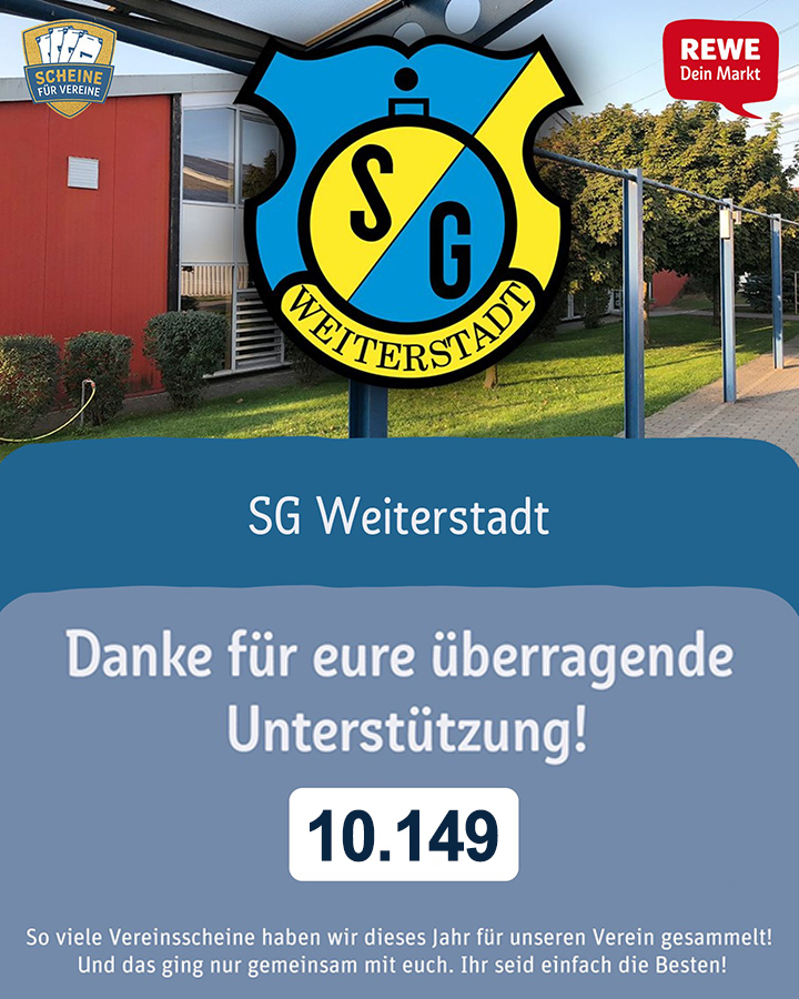 Die REWE Aktion Scheine für Vereine ist beendet. Wir haben 10.149 Scheine erzielt, nur knapp unter dem Ergebnis des Vorjahres obwohl die Aktion dieses Jahr ca. zwei Wochen kürzer lief.